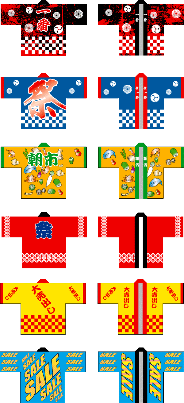 ハッピの制作例 遠くからでも目立つ費用対効果に優れた広告ツール のぼり・旗・両面転写 株式会社久保旗店