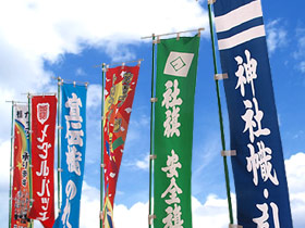 のぼり・旗の印刷方法は、両面転写・片面転写・シルクスクリーン印刷・手染め等ご相談ください 株式会社久保旗店